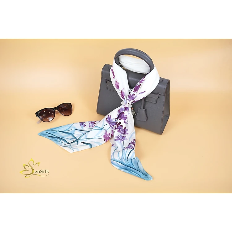 Khăn Lụa Vuông Vẽ Hoa Lavender SenSilk – Vietnam Gift