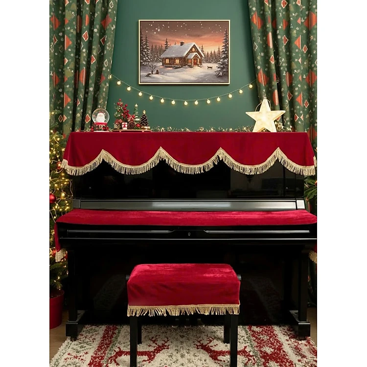 Khăn phủ đàn piano cơ đàn piano điện tử 88 phím nhung đỏ trang trí giáng sinh noel năm mới Tết - Hàng chính hãng