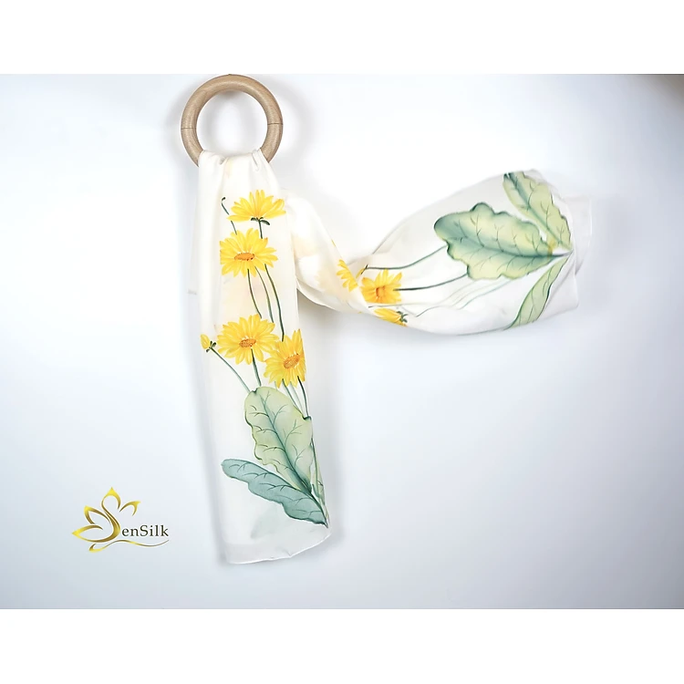 Khăn Quàng Cổ Lụa Vẽ Tay Handmade Hoa Đồng Tiền SenSilk - 100% Mulberry Silk Hand Painted