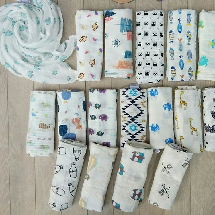 Kích thước: 120cm x 120cm. Màu: Nhiều hoa văn, nhiều màu, nhiều họa tiết các mom tha hồ lựa chọn. Công dụng: Dùng làm khăn tắm, khăn lau, khăn ă Dùng làm khăn trải khi bé nằm, khi cần thay tã ở nơi công cộng, Quấn khi bé ngủ để giữ tư thế cho bé. Với người lớn có thể là chiếc khăn lau tóc, lau đầu.