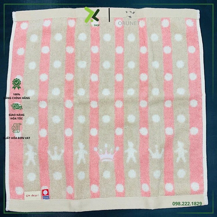 Khăn tắm bé họa tiết chấm bi Orunet OG1005 Nhật Bản - Chất liệu cotton (34x35cm)