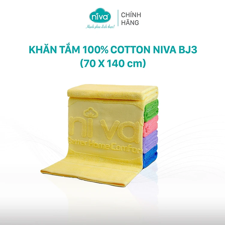 Khăn Tắm Cotton Tự Nhiên 100% Xuất Nhật Niva BJ3 Mềm Mịn Thấm Hút, An Toàn, Trơn Kích Thước 700x1400 mm