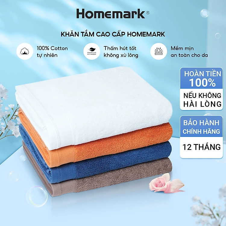 khăn tắm, khăn tay, khăn mặt sang trọng 100% cotton hữu cơ Homemark 500GSM mềm mại và khả năng thấm hút cao, nhanh khô
