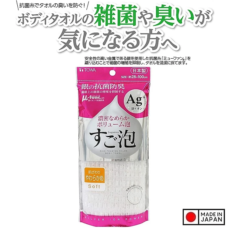 Khăn tắm kháng khuẩn Ag+ Towa Sangyo 28x100cm (Soft) - Hàng Nội Địa Nhật Bản nhập khẩu