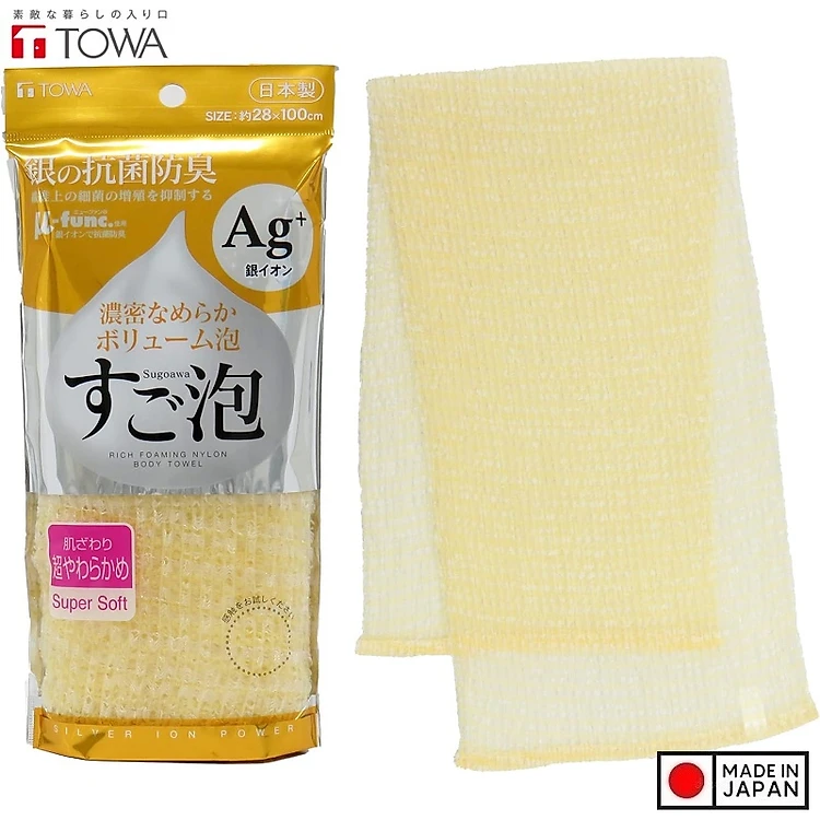 Khăn tắm kỳ lưng cao cấp kháng khuẩn Ag+ Towa Sangyo - Made in Japan