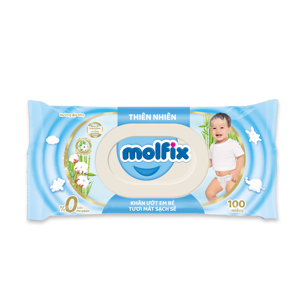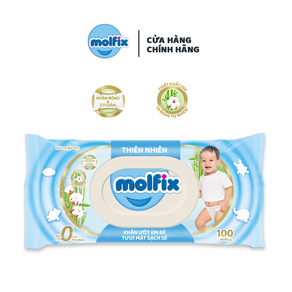 Khăn ướt Molfix Thiên nhiên Tươi Mát Sạch Sẽ - Gói 100 miếng