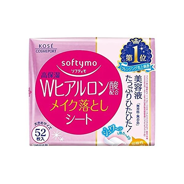 Khăn Ứớt Tẩy Trang Dưỡng Ẩm Bổ Sung Acid Hyaluronic Kose Softymo Nhật Bản (Gói refill 52 Miếng)