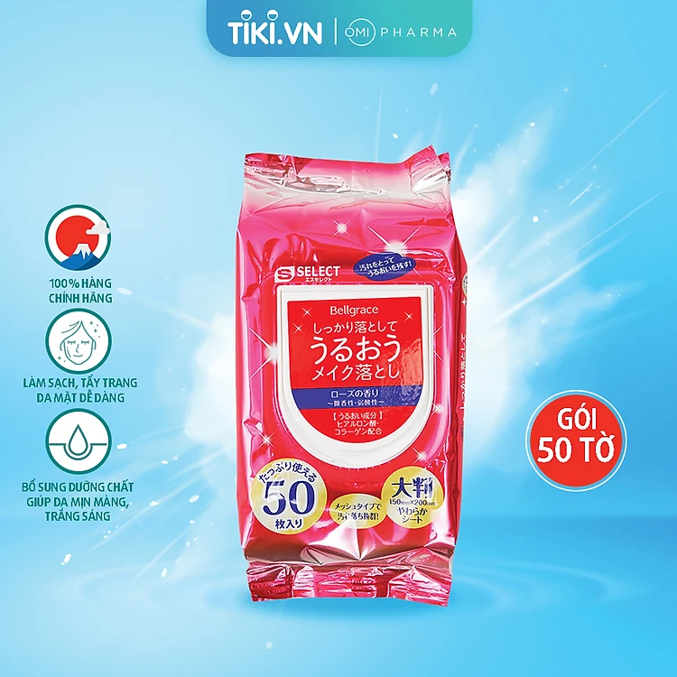 KHĂN ƯỚT TẨY TRANG DƯỠNG ẨM S SELECT NHẬT BẢN (GÓI 50 TỜ)