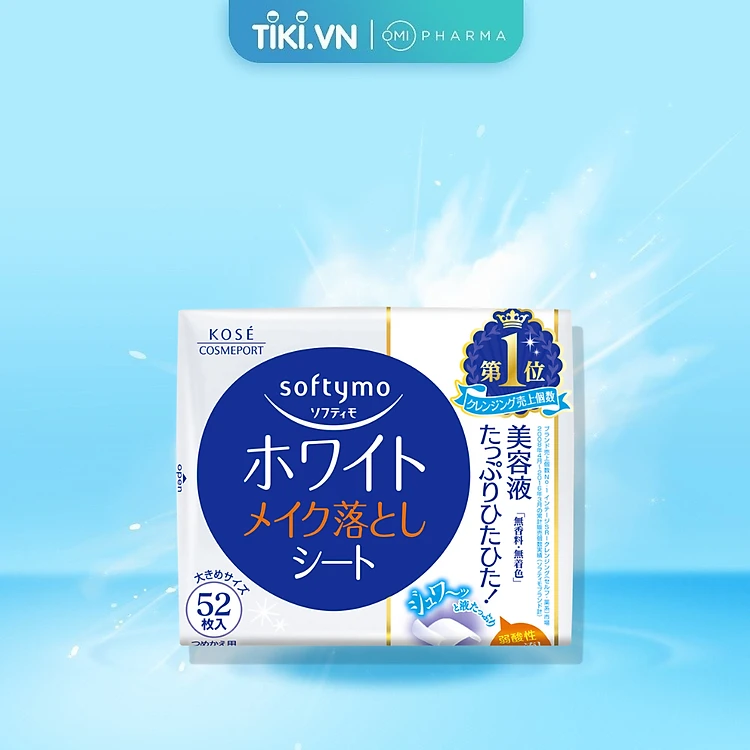 Khăn Ứớt Tẩy Trang Dưỡng Trắng Da Softymo Kose Nhật Bản Gói Refill 52 Miếng