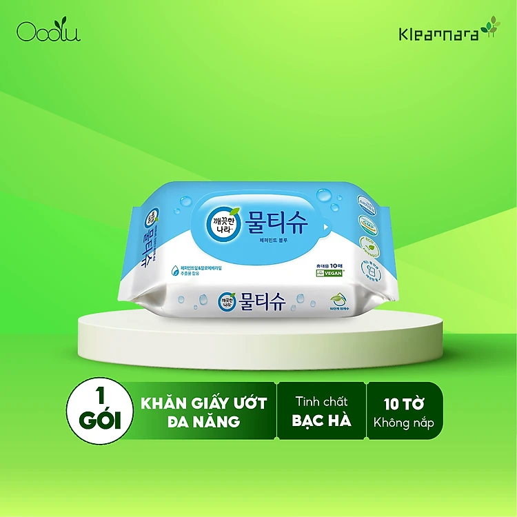 KHĂN VỆ SINH GIẤY (ƯỚT) KLEANNARA PEPPERMINT WET TISSUE POTABLE HƯƠNG BẠC HÀ (10 TỜ)