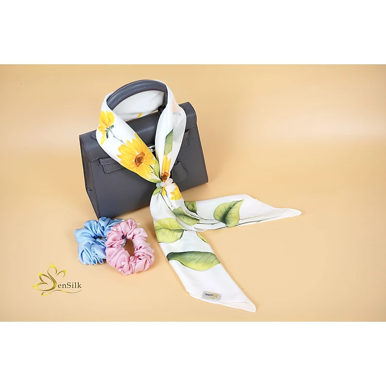Khăn Vuông Vẽ Tay Hướng Dương – Quà Lưu Niệm Việt, Khăn Lụa Tơ Tằm Thuần Việt SenSilk