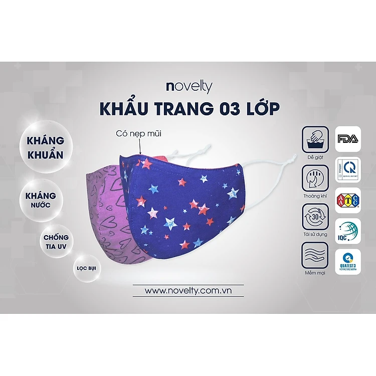 KHẨU TRANG 3 LỚP NOVELTY “KHÁNG GIỌT BẮN – KHÁNG KHUẨN” GIAO MÀU NGẪU NHIÊN