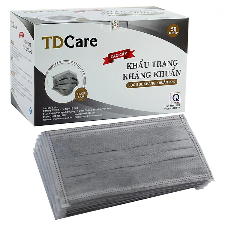 Khẩu trang kháng khuẩn TDCare 4 Lớp - Xám