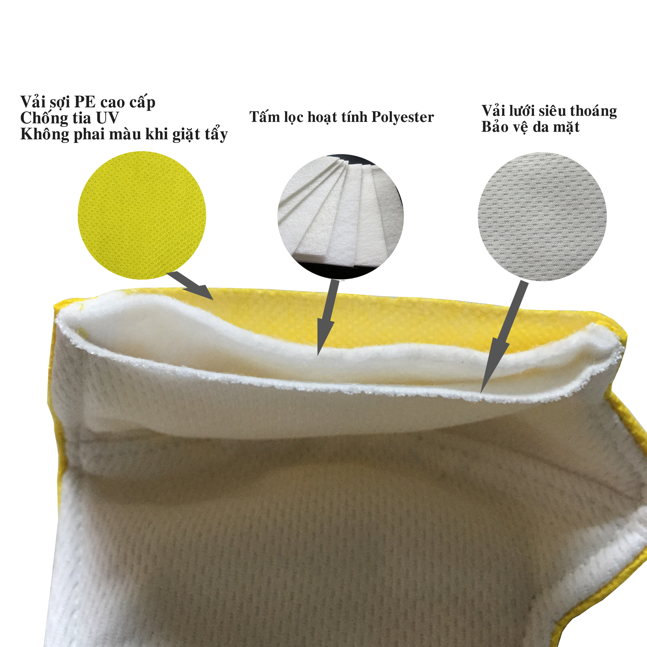 - Thành phần: 100% sợi poly cao cấp sử lý vô khuẩn độc hại