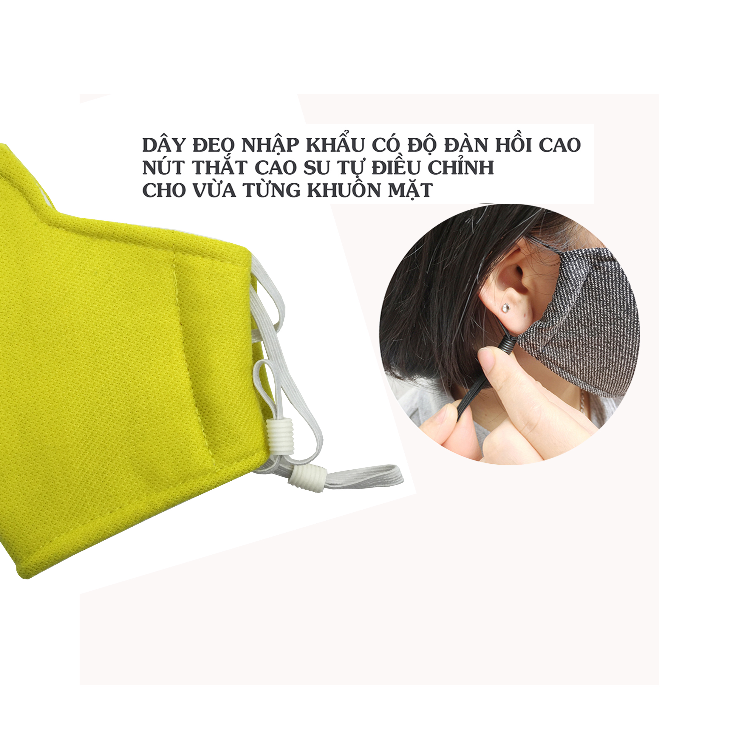 - Điều chỉnh nút thắt dây thun ra vào cho vừa khít khuôn mặt