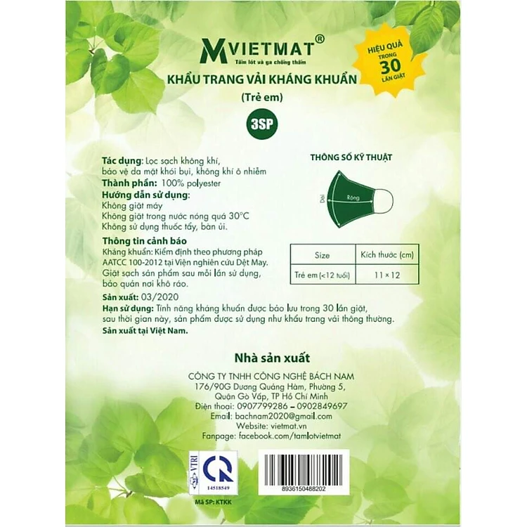 Khẩu trang vải kháng khuẩn VIETMAT