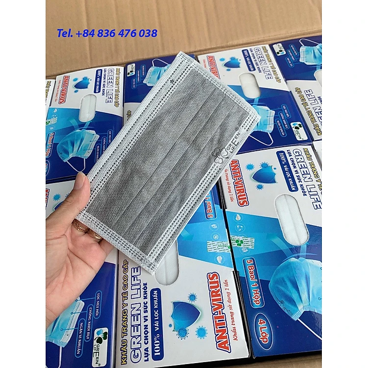 Khẩu trang y tế 4 lớp kháng khuẩn màu xám GREEN LIFE - có chứng nhận kiểm định chất lượng