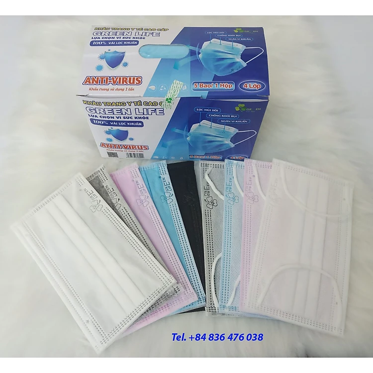 Khẩu trang y tế 4 lớp kháng khuẩn, mềm mịn, mát - có chứng nhận kiểm định chất lượng - GREEN LIFE