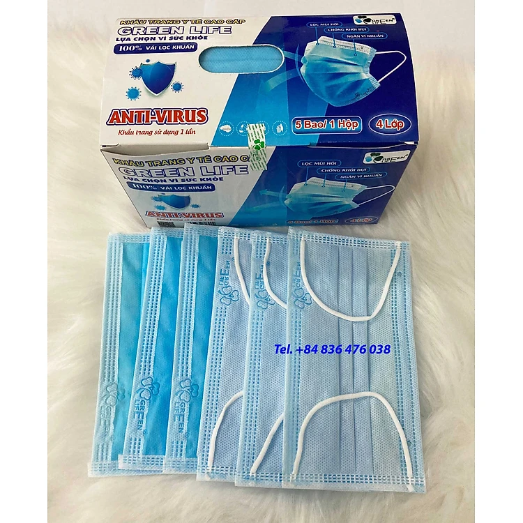 Khẩu trang y tế 4 lớp kháng khuẩn, mềm mịn, mát - có chứng nhận kiểm định chất lượng - GREEN LIFE