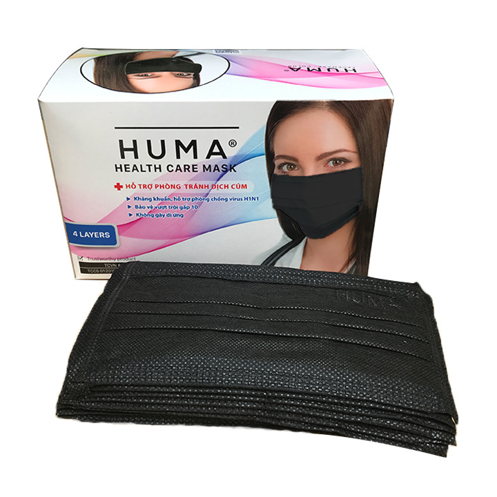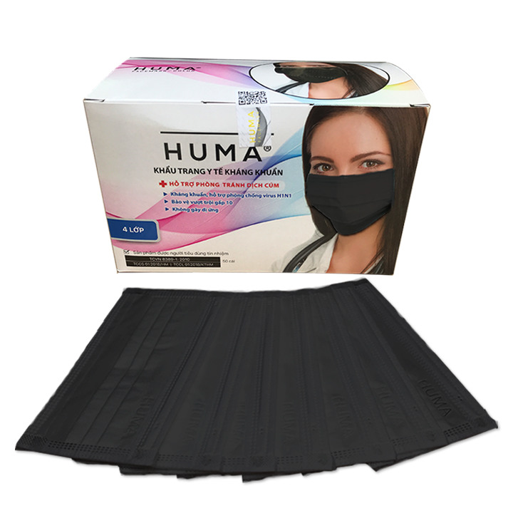 Khẩu Trang Y Tế Cao Cấp HUMA Ion Bạc Khử Độc - Hộp 50 Cái Màu Đen