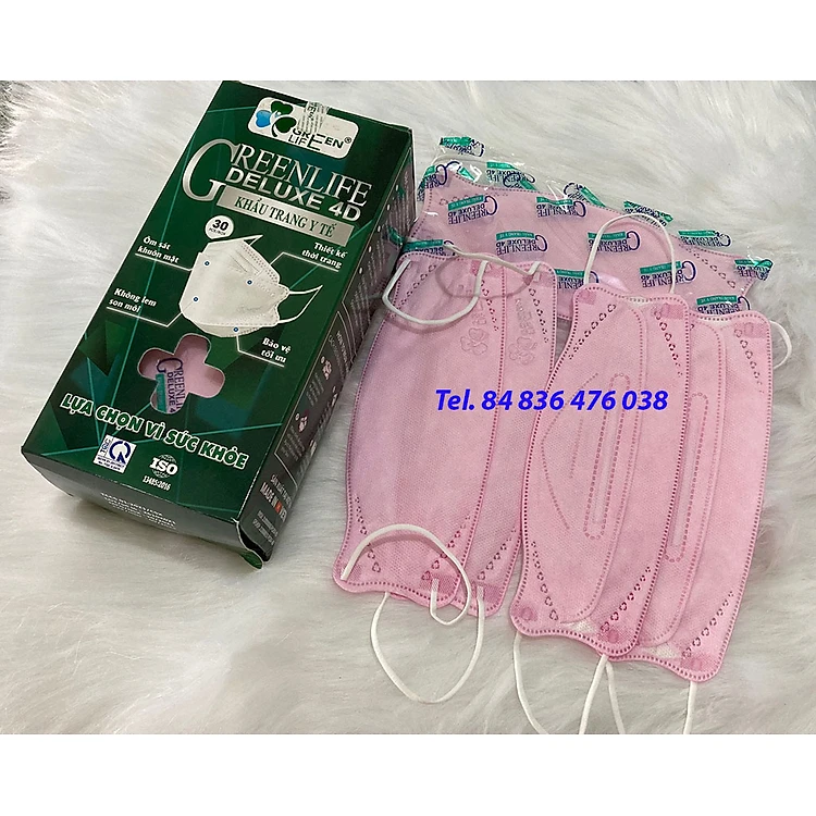Khẩu trang y tế kháng khuẩn 4D GREEN LIFE màu hồng - có chứng nhận kiểm định chất lượng