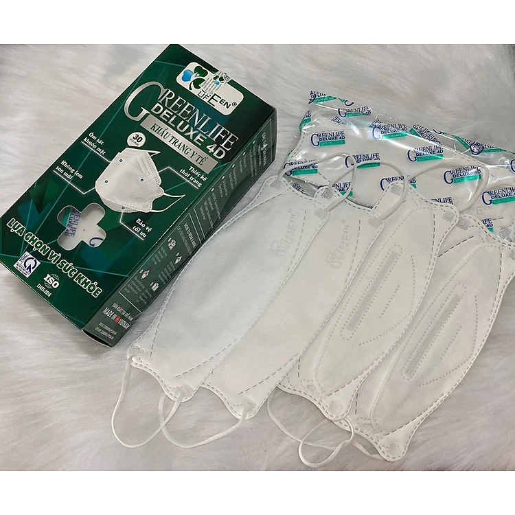 Khẩu trang y tế kháng khuẩn 4D GREEN LIFE màu trắng - có chứng nhận kiểm định chất lượng