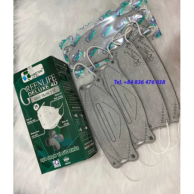 Khẩu trang y tế kháng khuẩn 4D GREEN LIFE màu xám - có chứng nhận kiểm định chất lượng