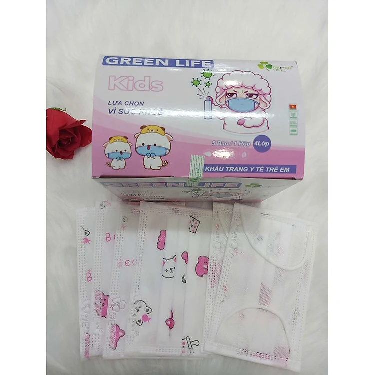 Khẩu trang y tế trẻ em kháng khuẩn GREEN LIFE - MÈO hồng