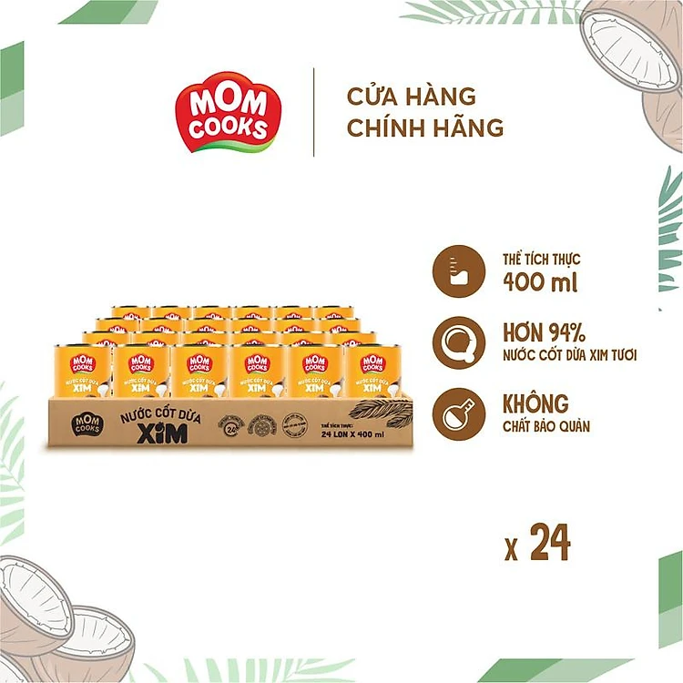 Khay 24 lon Nước cốt dừa MomCooks 400ml/lon