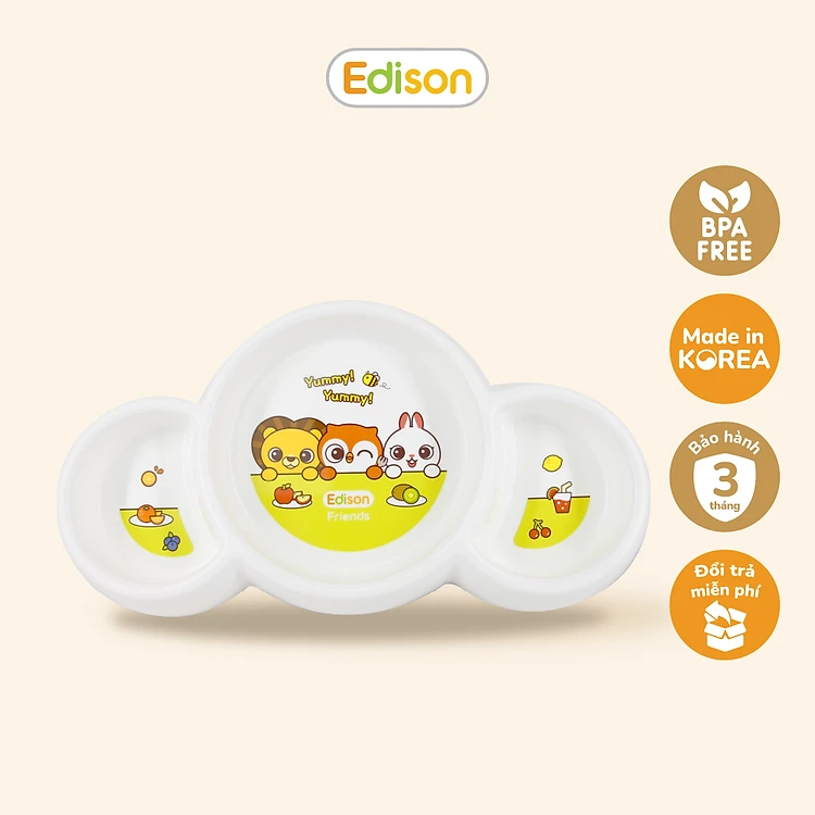 Khay ăn dặm 5 ngăn Edison Hàn Quốc có đế chống trơn cho bé mã 6872