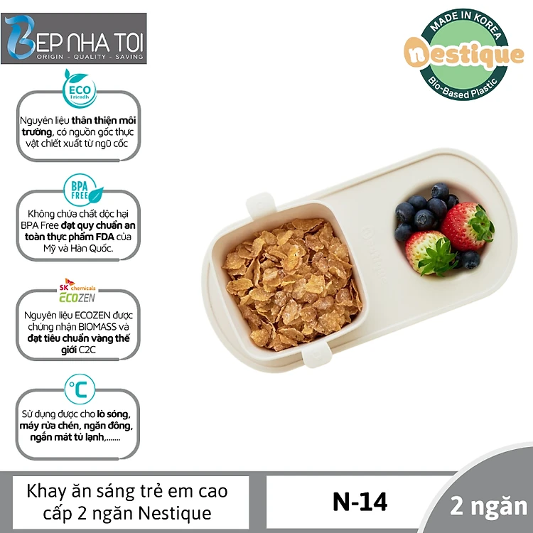 Khay ăn trẻ em cao cấp 2 ngăn hiệu Nestique N-14