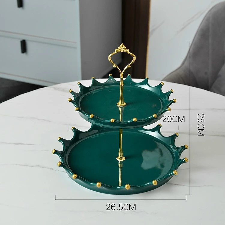 KHAY ĐỰNG BÁNH KẸO HOA QUẢ HAI TẦNG BẰNG SỨ CAO CẤP VIỀN VƯƠNG MIỆN - ANTH659