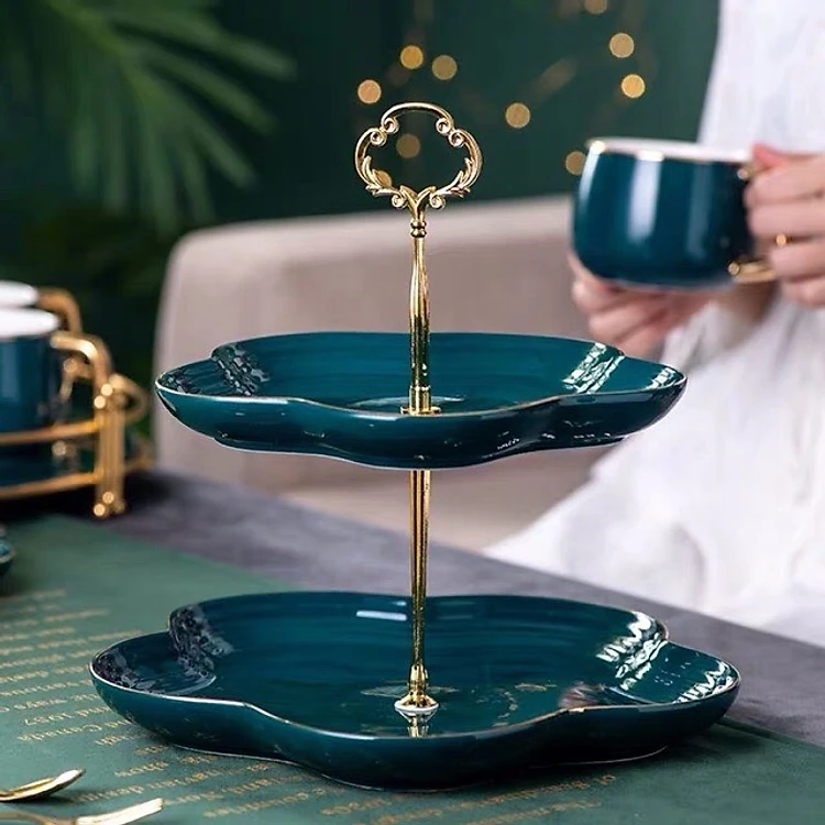 KHAY ĐỰNG BÁNH KẸO HOA QUẢ SỨ MÀU XANH CỔ VỊT HÌNH HOA 5 CÁNH CAMELIA - ANTH401