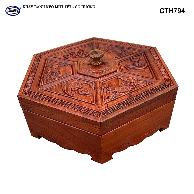 Khay đựng bánh kẹo mứt tết Phúc Lộc Thọ (Gỗ Hương Loại VIP) đục chạm đẹp - bày đẹp trang trí sang trọng cho ngày tết, mang lại tài lộc cho gia đình - CTH794