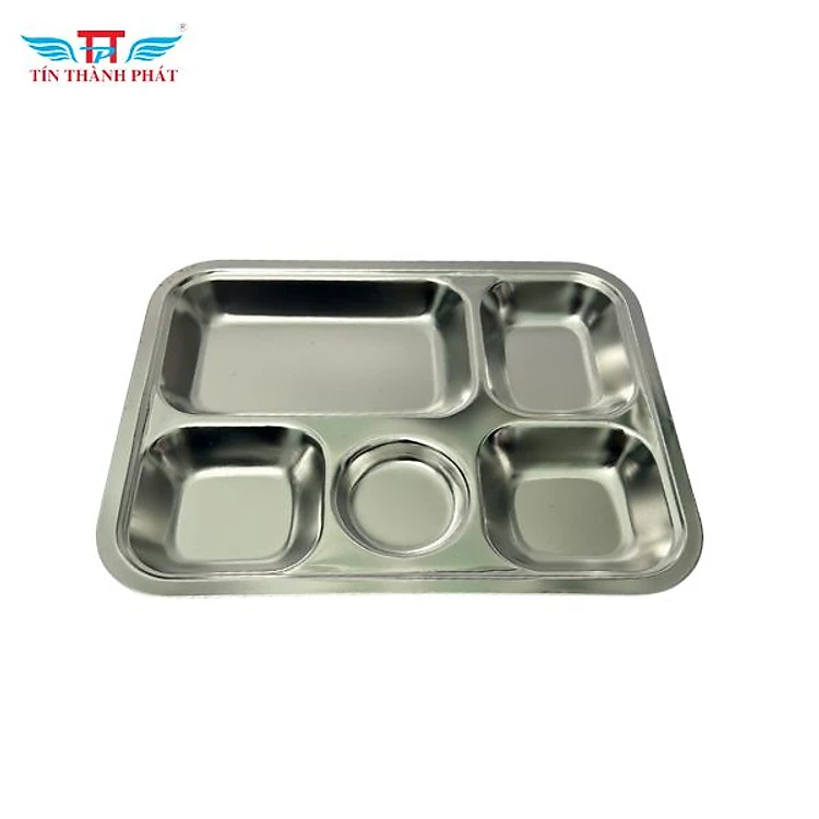 Khay inox đựng cơm 5 ngăn nhỏ Tín Thành Phát Thiết kế nhỏ gọn, dễ dàng sử dụng, đảm bảo vệ sinh
