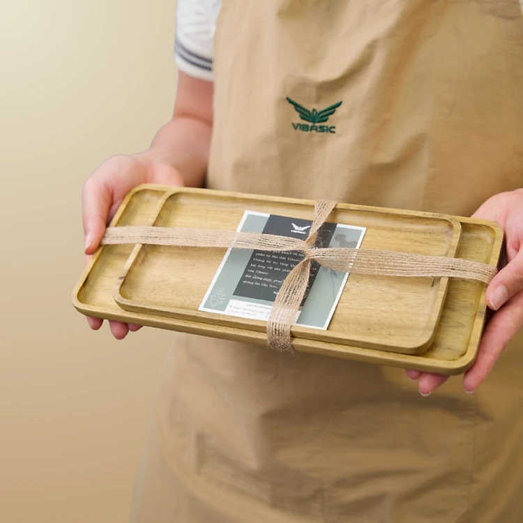 Khay gỗ keo đa năng hình chữ nhật Vibasic, đa dạng kích thước, chụp hình decor đựng đồ trang trí