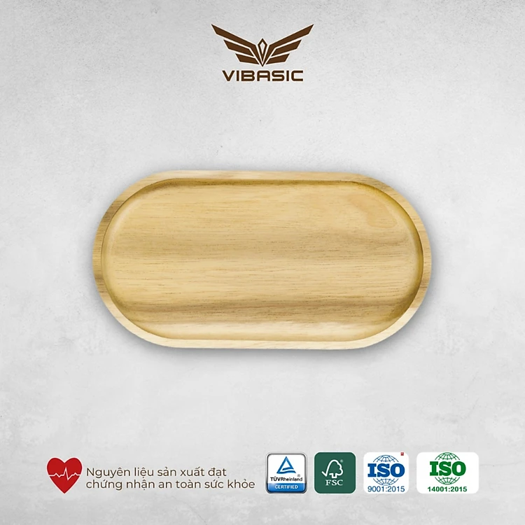 Khay gỗ keo đa năng hình oval Vibasic, đa dạng kích thước, chụp hình decor đựng đồ trang trí