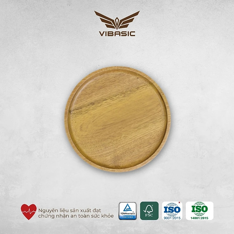 Khay gỗ keo đa năng hình tròn Vibasic, đa dạng kích thước, chụp hình decor đựng đồ trang trí