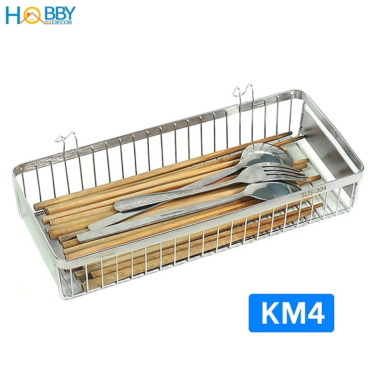 Khay đựng đũa muỗng có 2 móc treo inox 304 Hobby Home Decor KM