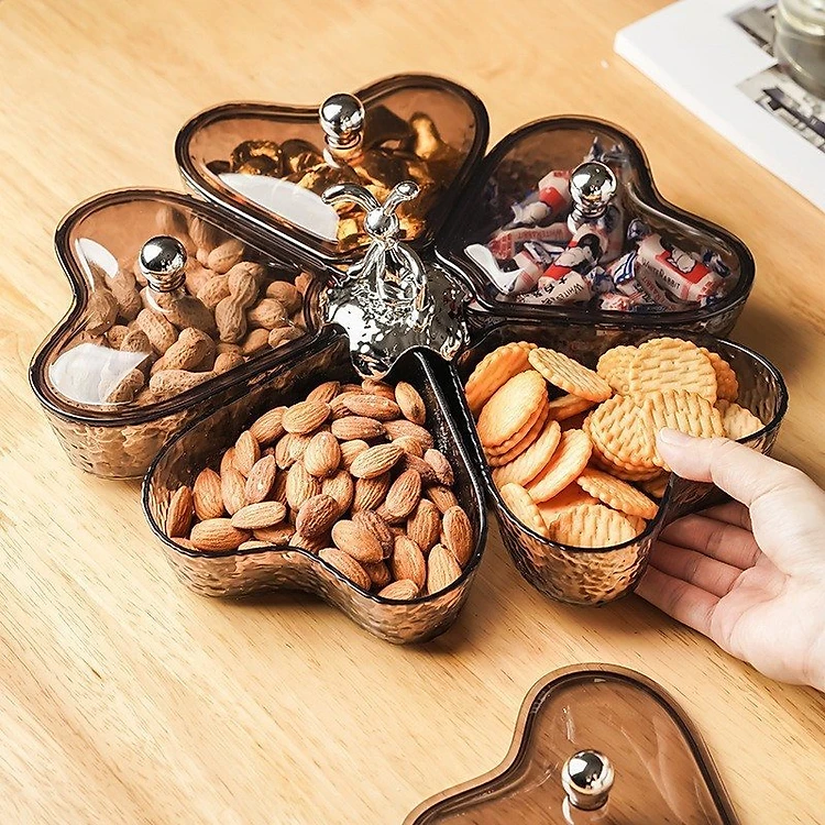 Khay đựng mứt bánh kẹo xoay 5 ngăn hình trái tim, khay đựng trái cây sang trọng
