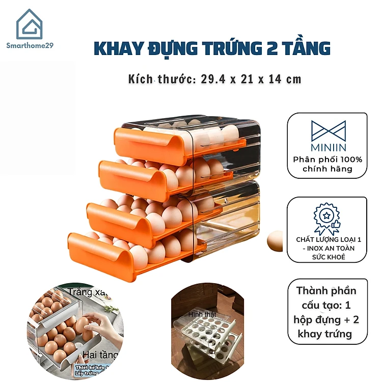 Khay Đựng Trứng Trong Tủ Lạnh 2 Tầng Vỏ Hộp Ngoài Được Làm Bằng Chất Liệu Nhựa PP Trong Suốt Siêu Bền - HÀN CHÍNH HÃNG MINIIN