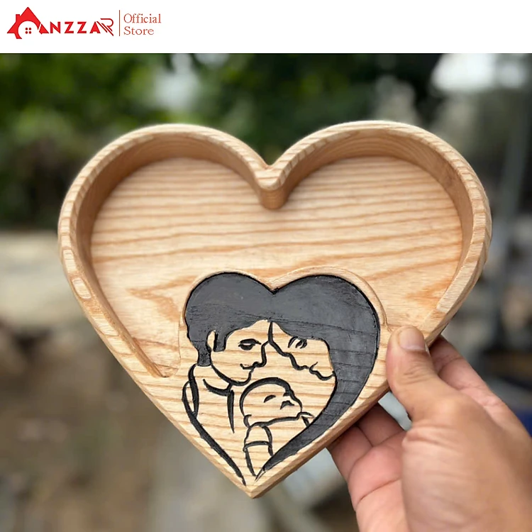 Khay gỗ hình trái tim decor trang trí, khay đựng bánh kẹo mứt Tết/Trung thu bằng gỗ óc chó/tần bì nguyên khối cao cấp-04