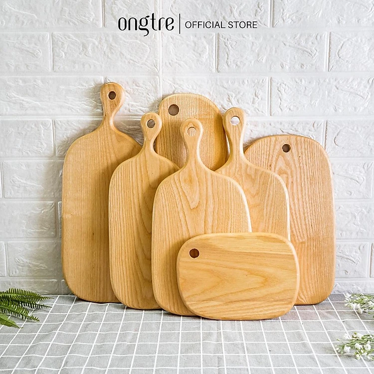 Khay gỗ tần bì đa năng ONGTRE có tay cầm dùng đựng đồ ăn, decor chụp ảnh