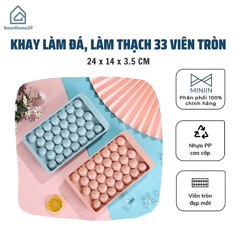 Khay Làm Đá Bằng Nhựa 33 Viên Tròn Cao Cấp, Khuôn Làm Thạch Thông Minh Có Nắp Đậy - Chính hãng MINIIN (Giao màu ngẫu nhiên)