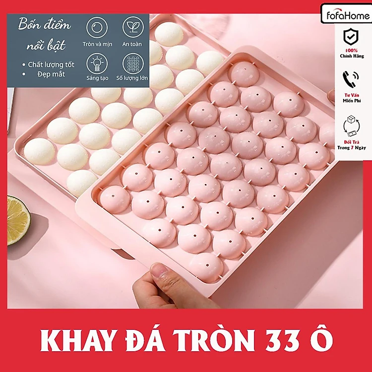 Khay Làm Đá Viên Tròn, Khay Đá Tròn Có Nắp Đậy Thông Minh, Khuôn Rau Câu Làm Thạch 33 Ô