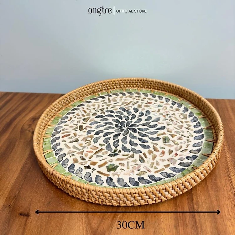 Khay mây khảm trai ONGTRE cao cấp, đựng đồ đa năng - OTK4