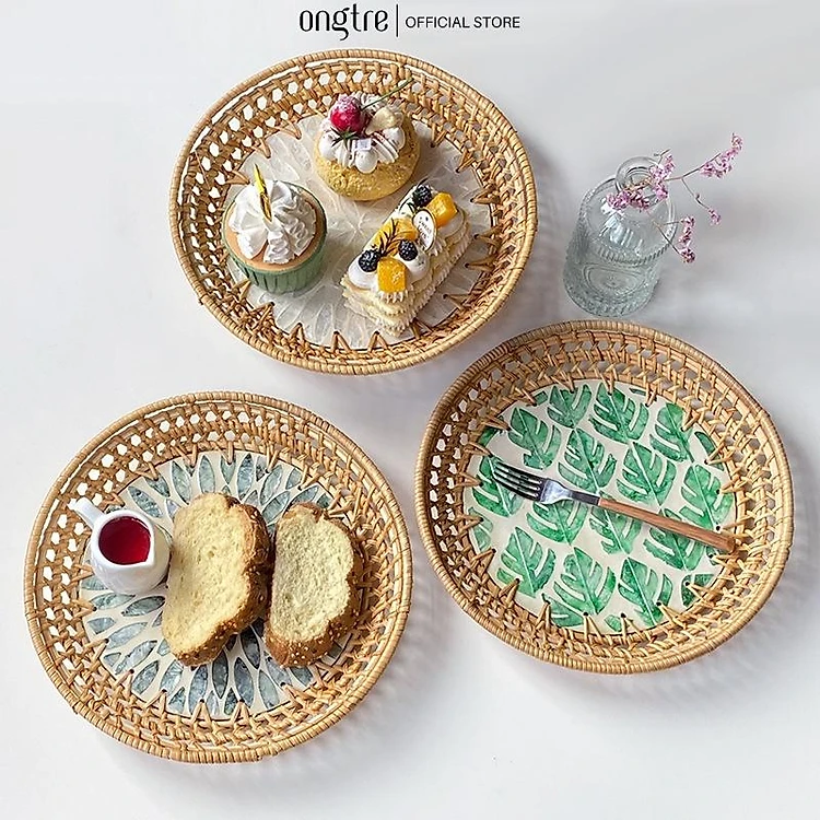 Khay mây khảm trai ONGTRE cao cấp đựng đồ đa năng - OTK5