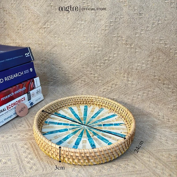 Khay mây khảm trai ONGTRE cao cấp đựng đồ đa năng - OTK6