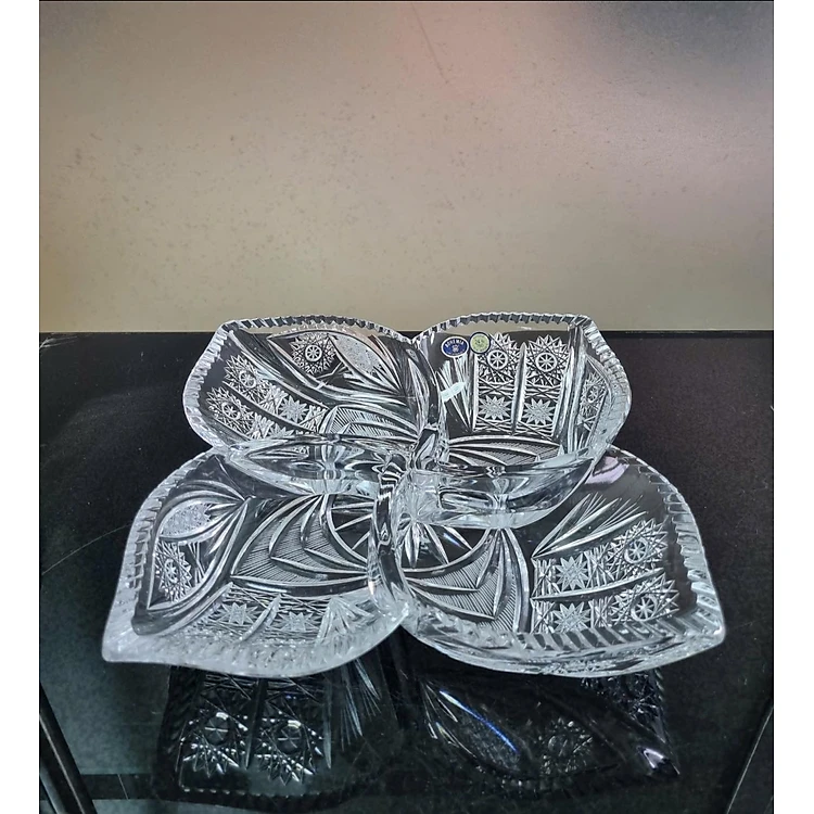Khay mứt 4 cánh hoa pha lê mài Bohemia đường kính 35cm Hàng chính hãng