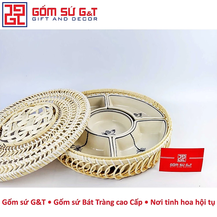 Khay mứt Tết vẽ bông sen Gốm Sứ G&T
